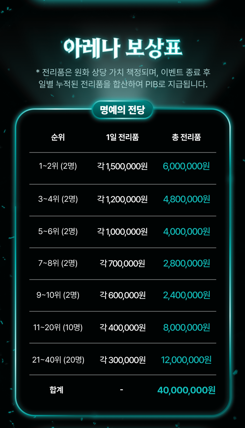 - 21stโ40th (20 users) / KRW 300,000 each / KRW 12,000,000
